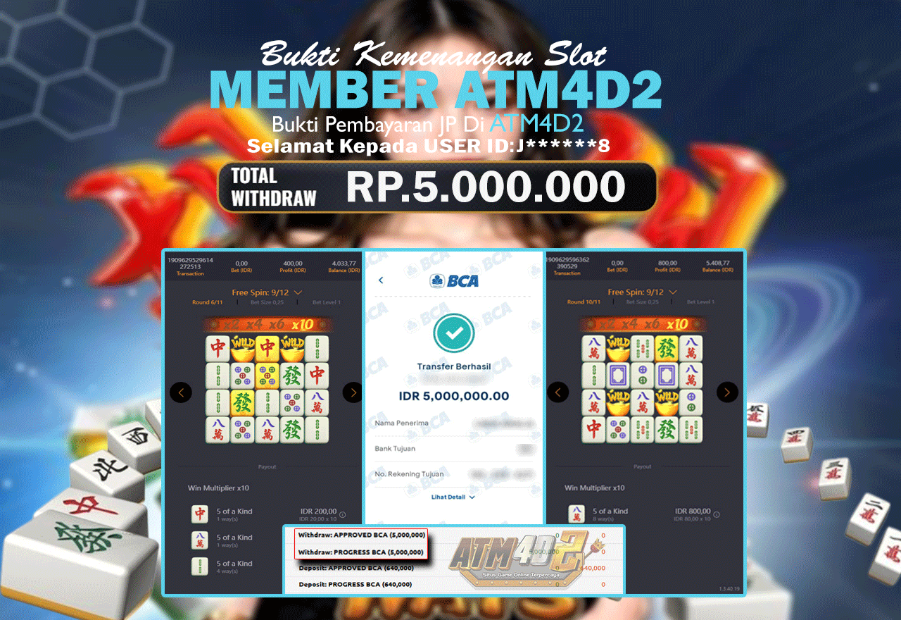 ATM4D2 dikenal sebagai situs terpercaya yang selalu menghadirkan pengalaman bermain slot online yang aman, fair, dan berlisensi resmi. Di sini, kami tidak hanya sekadar memberikan janji, tapi bukti nyata berupa slip kemenangan yang dapat Anda lihat secara langsung.