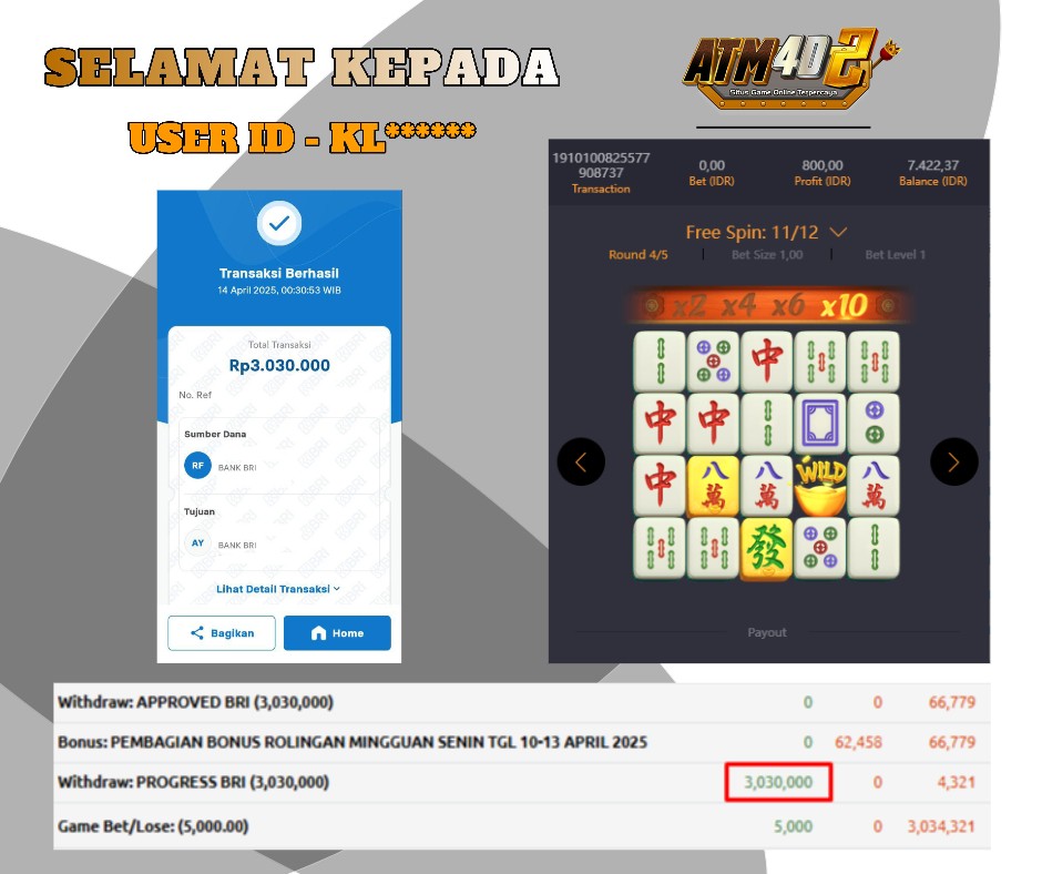 ATM4D2 dikenal sebagai situs terpercaya yang selalu menghadirkan pengalaman bermain slot online yang aman, fair, dan berlisensi resmi. Di sini, kami tidak hanya sekadar memberikan janji, tapi bukti nyata berupa slip kemenangan yang dapat Anda lihat secara langsung.