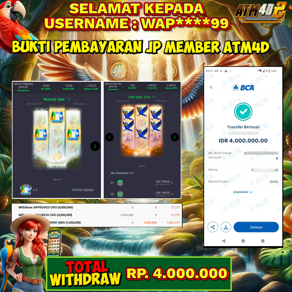 Satu lagi Bukti JP dan Pembarayan Sah Dan Dapat Dipertanggung Jawabkan, WD Berapapun Pasti Dibayar Lunas Hanya di Situs ATM4D2. Hati Hati Kepada Pihak Pihak Yang Mengatas namakan Pihak ATM4D2 Untuk Melakukan Penipuan.