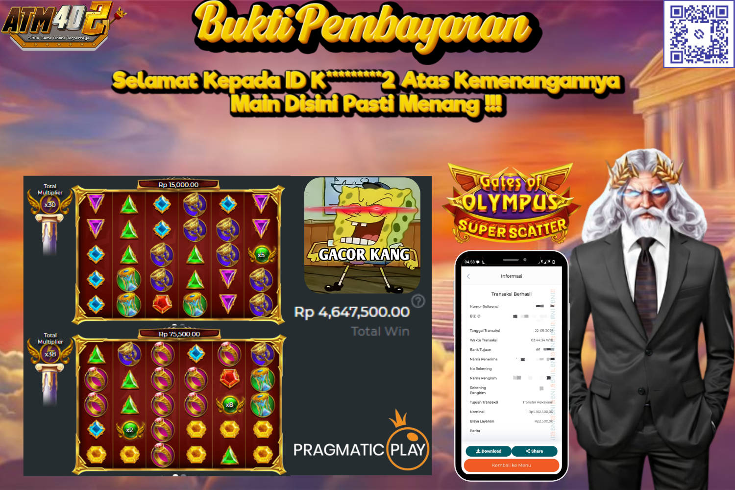 ATM4D2 dikenal sebagai situs terpercaya yang selalu menghadirkan pengalaman bermain slot online yang aman, fair, dan berlisensi resmi. Di sini, kami tidak hanya sekadar memberikan janji, tapi bukti nyata berupa slip kemenangan yang dapat Anda lihat secara langsung.