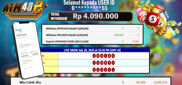 ATM4D2 dikenal sebagai situs terpercaya yang selalu menghadirkan pengalaman bermain slot online yang aman, fair, dan berlisensi resmi. Di sini, kami tidak hanya sekadar memberikan janji, tapi bukti nyata berupa slip kemenangan yang dapat Anda lihat secara langsung.